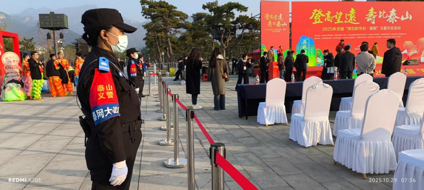 2025年10月29日,“登高望远・寿比泰山”2025年全国“我们的节日・重阳”主题文化活动在泰安启幕。泰山义警联合会携手山东锦衣特卫保安服务有限公司,全程护航活动安保工作。